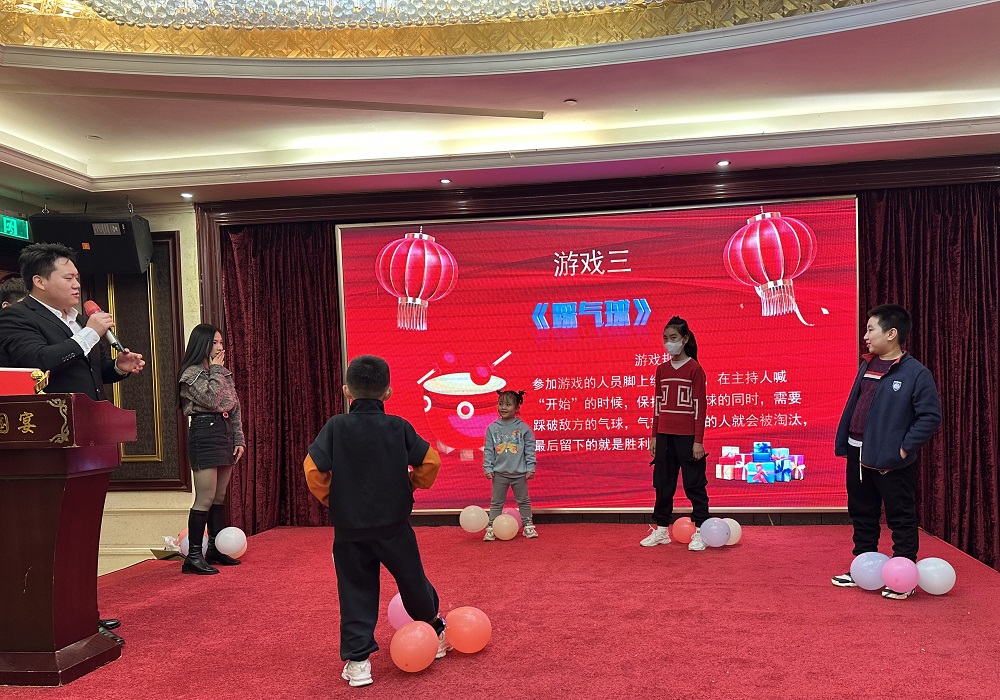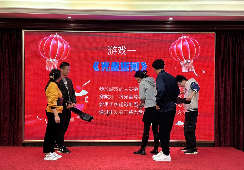 《光盤(pán)拔河》哦諾多姿的身體擺動(dòng)、《戴帽子吃糖》猙獰狼狽的努力表情和《歡樂(lè)踩氣球》你來(lái)我往的大混戰(zhàn),更是給年會(huì)增添了許多樂(lè)趣。